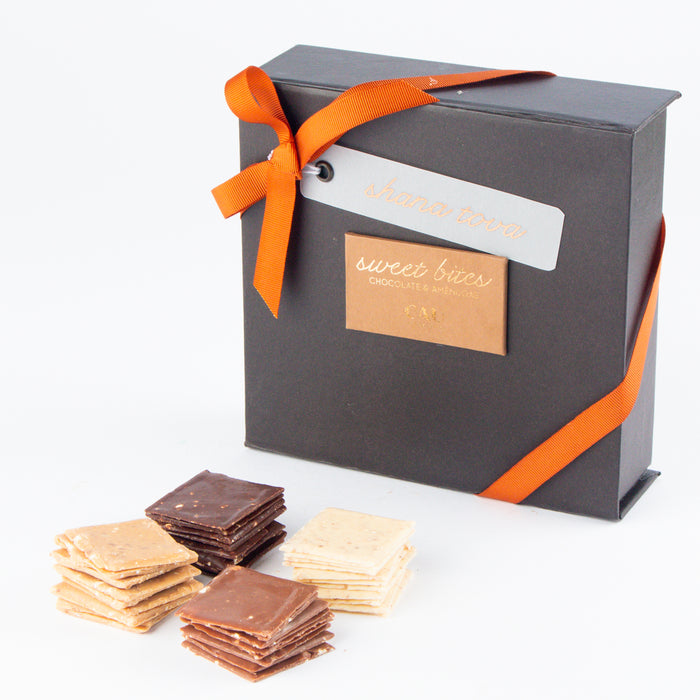 DescriçãoUma seleção com bombons exclusivos e recheios surpreendentes!Um presente super especial pra desejar Shana Tova! IngredientesChocolate 33% cacau (açúcar, manteiga...